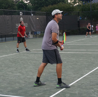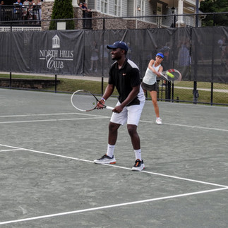 Beautiful weather arrived just in time for the King of the Court Pro-Am Fundraiser held at the North Hills Club on the evening of Friday, June 4th. One hundred and seventy-five guests came out to honor beloved Raleigh native and Raleigh Tennis legend, Cy King for his remarkable 50 years of service. The night was hosted and sponsored by the North Hills Club along with these wonderful community sponsors: Raleigh Racquet Club, Bryan's Tennis, Wake Med, Wake Ortho, Swing Racquet + Paddle, Omega Sports, Wegmans, Smart Athlete Physiotherapy, and Find the Gem Coaching. Guests dined and enjoyed a fun-filled night of incredible, non-stop tennis. The action of the Pro-Am featured both area high-level tennis players and amateur players competing together.